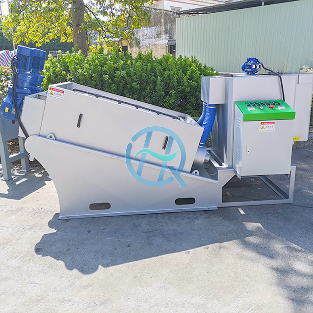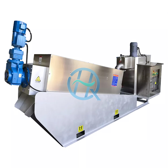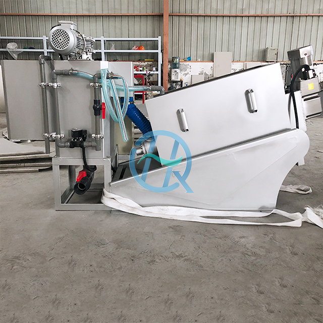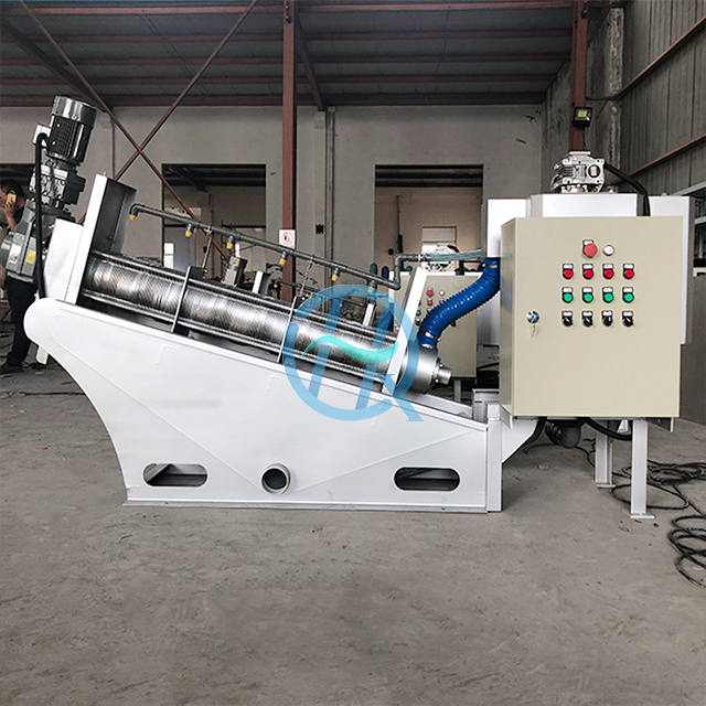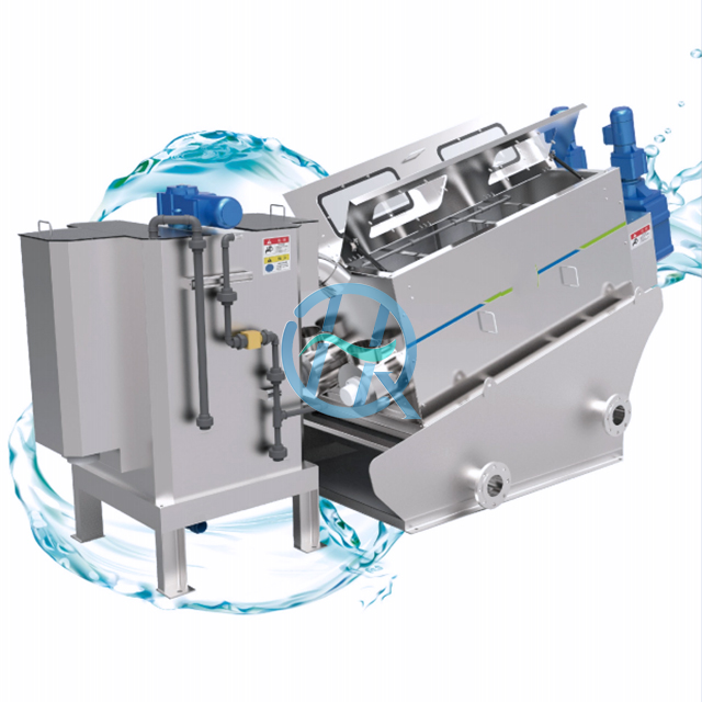 The screw stacker sludge dehydrator is a screw press dehydrator, which can reduce the sedimentation tank and sludge thickener, and save the construction cost of the sewage station. The stacked screw sludge dehydrator ingeniously uses the multiple ring automatic cleaning filtration technology to replace the traditional screen filtration. The self-cleaning filtration technology ensures the continuous and stable sludge and water separation effect of the dehydrator. It is a new type of solid-liquid separation equipment that realizes the squeezing dehydration of sludge through the strong squeezing pressure generated by the change of screw diameter and screw pitch, as well as the small gap between the moving ring and the fixed ring.