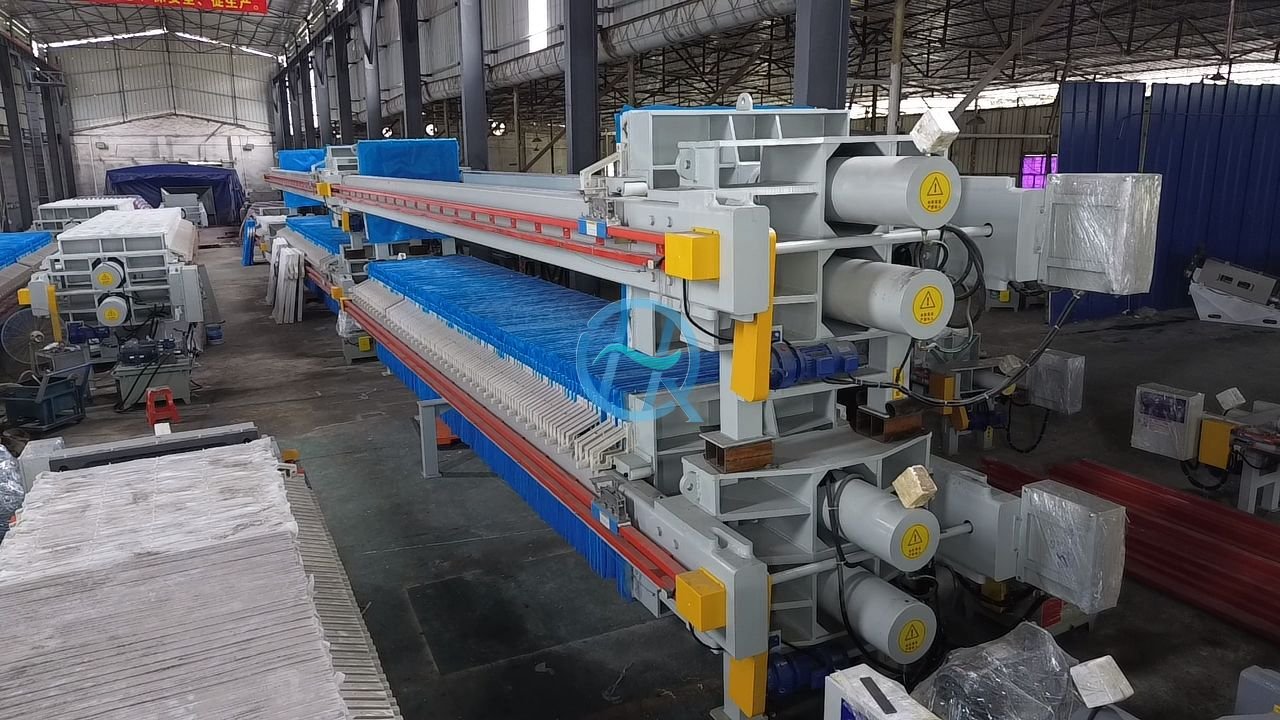 Automatic filter press is a kind of intermittent pressure filter equipment, used for all kinds of suspension of solid liquid separation, separation effect is good, easy to use, suitable for large filtration industry, high degree of automation or centralized control, filtration pressure of about 0.6Mpa filtration field. The whole machine adopts the integrated design and manufacture of machine, electricity and hydraulic, which can realize the process of automatic pressing, filtering, penetrating, pressing, loosening and pulling plate, etc. It has the characteristics of high degree of automation, large production capacity, low liquid content in filter cake, high unit output and small footprint. Widely used in petroleum, chemical industry, dye, metallurgy, pharmaceutical, food, paper, coal washing and sewage treatment and other need to carry out solid-liquid separation fields.